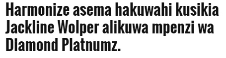Harmonize I heard that my boss and jacline diamond Platnumz Wolper is a man and his girlfriend